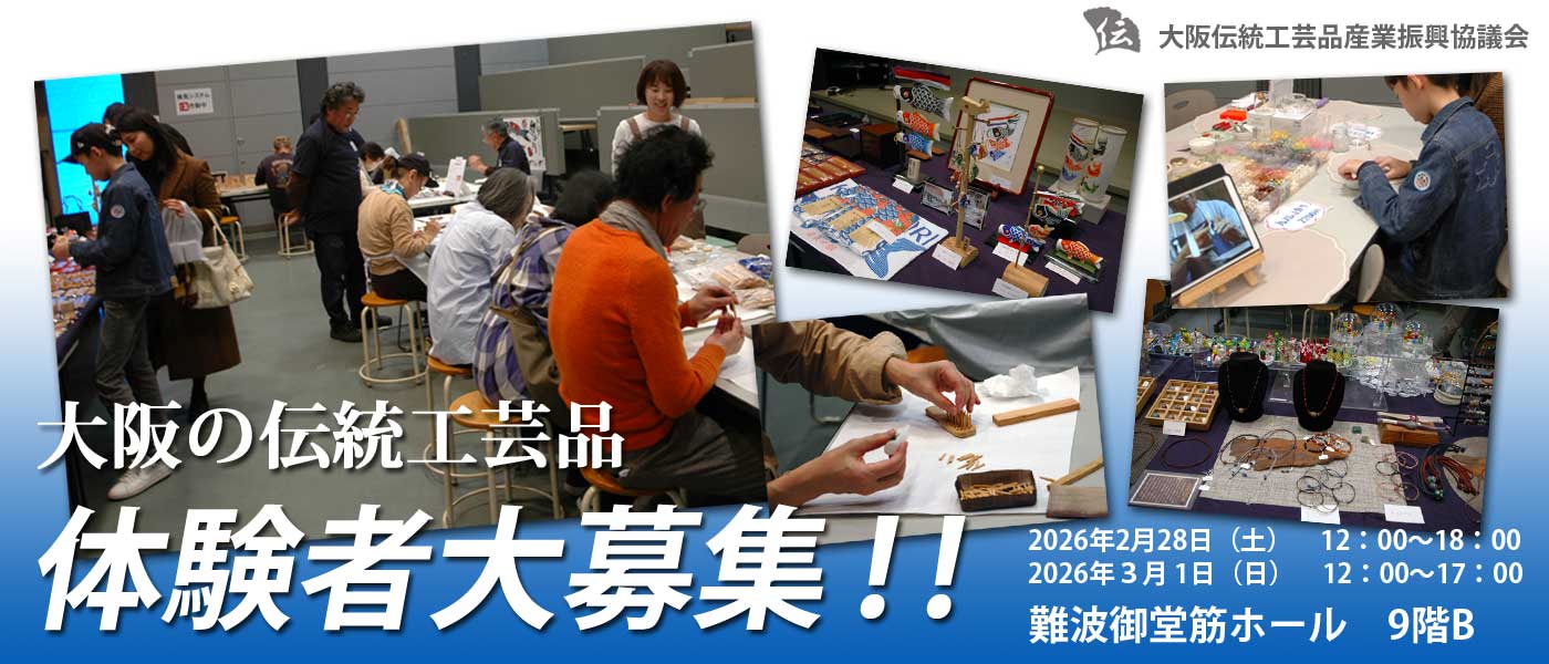 2月28日(土)、3月1日(日)、難波御堂筋ホール9階にて「大阪伝統工芸品のハンドメイドマルシェ」体験イベント&セレクトショップが開催されます。