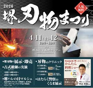 4月11日、12日にかけて、堺市産業振興センターにて「堺刃物まつり」が開催されます。詳しくは、こちらのページをご覧下さい。